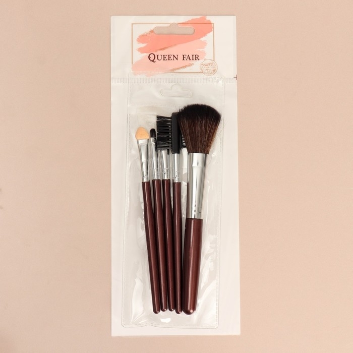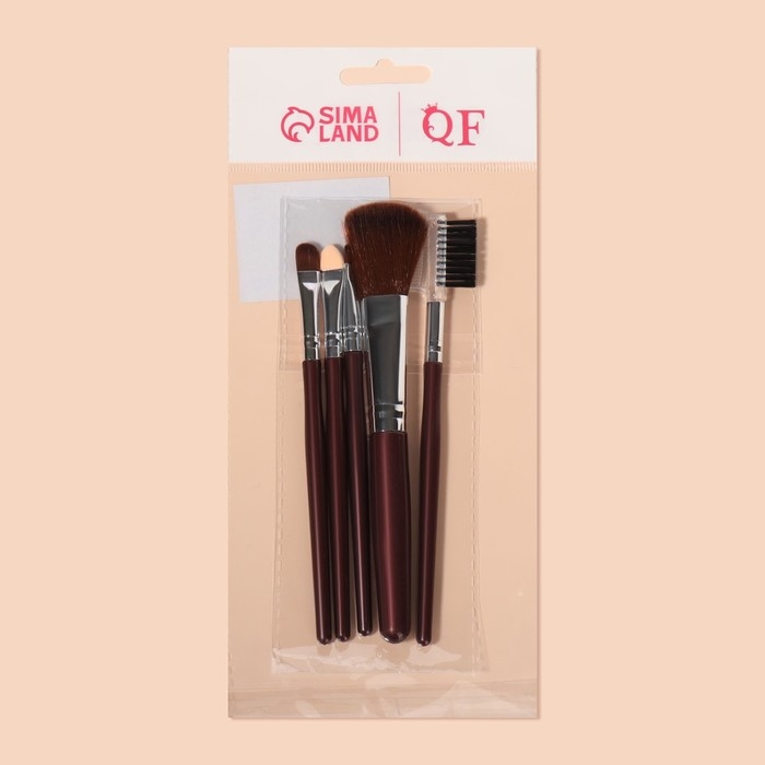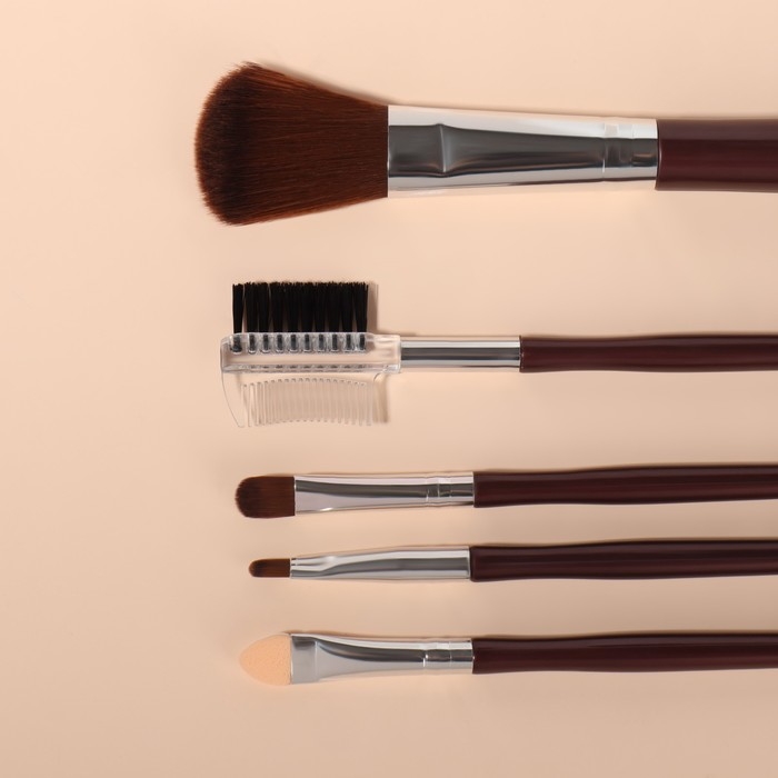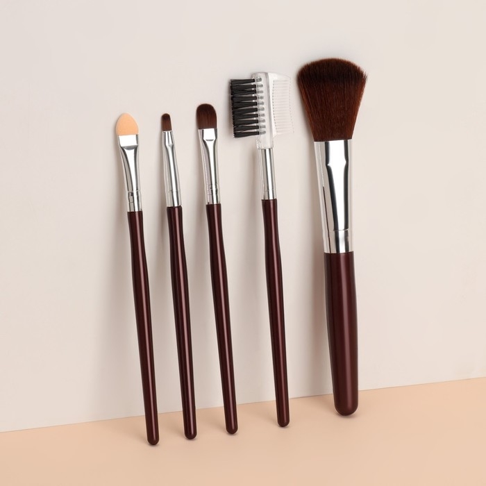 Набор кистей для макияжа, 5 предметов, цвет тёмно-коричневый