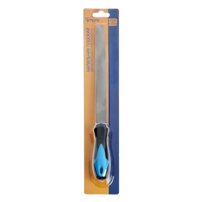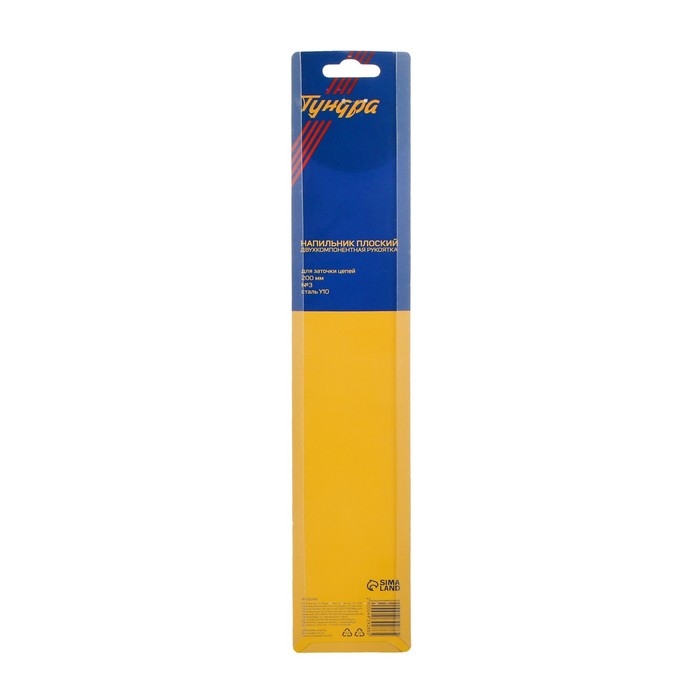 Напильник ТУНДРА, для заточки цепей пил, плоский, У10, 2К рукоятка, №3, 200 мм