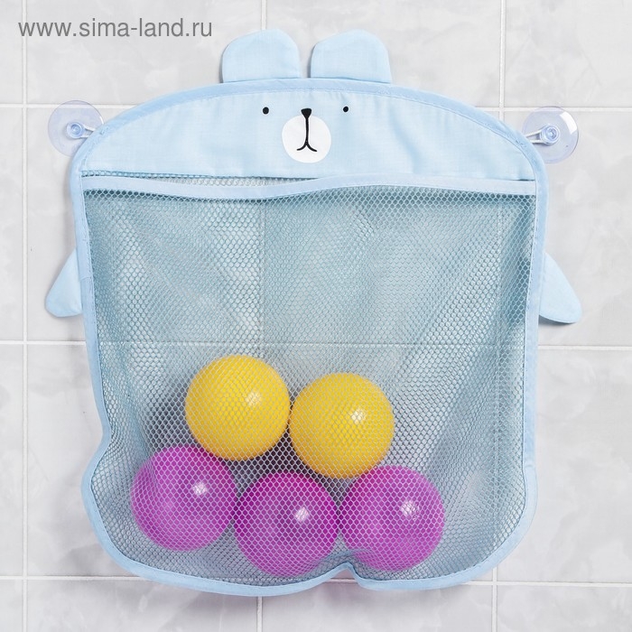 Сетка для хранения игрушек в ванной на присосках «Мишка», цвет голубой