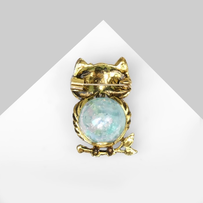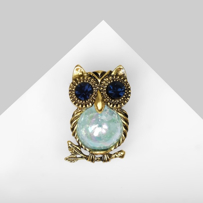 Брошь «Сова» шарик, цвет сине-голубой в чернёном золоте