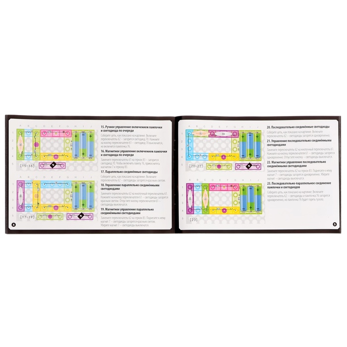 Увлекательный набор познакомит ребёнка с основами физики и электроники. Конструктор имеет множество вариантов сборки, благодаря которым юный инженер узнает о принципах работы электричества и научится самостоятельно собирать простые схемы.