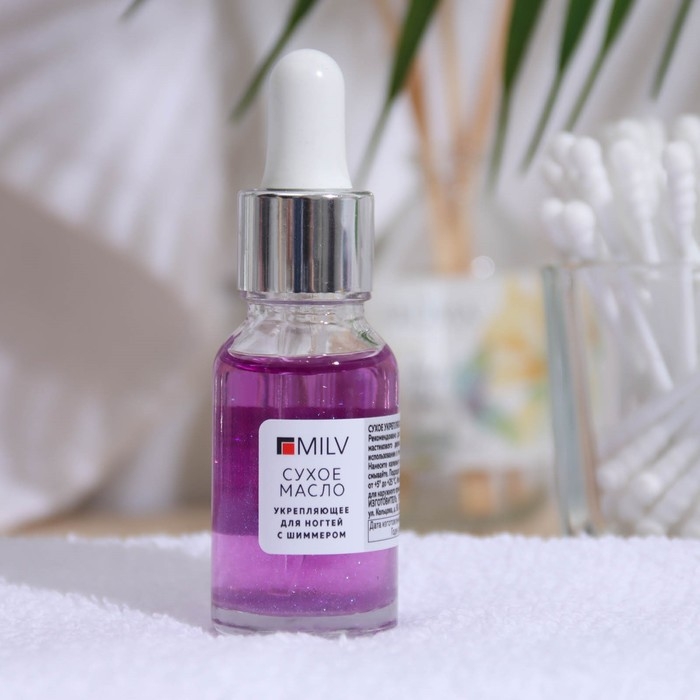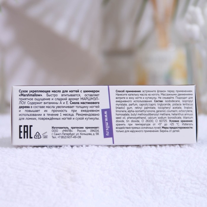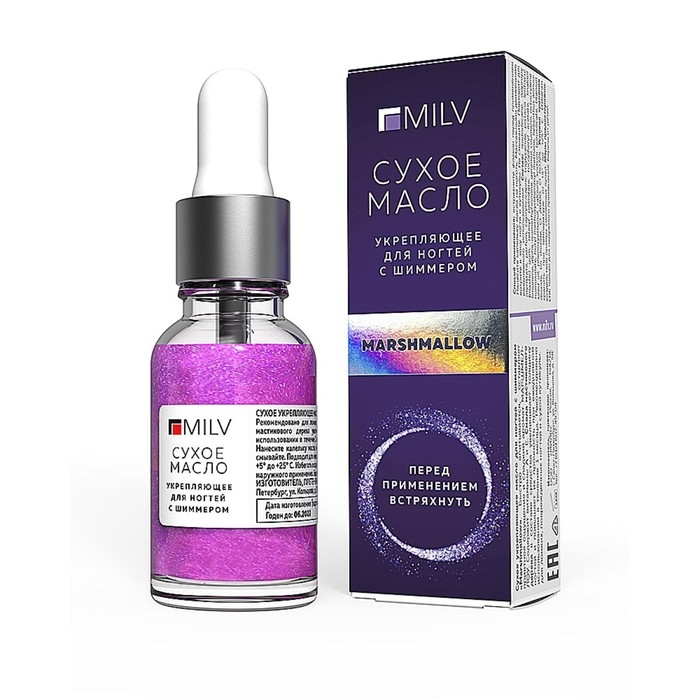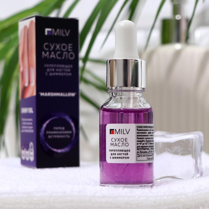 Сухое укрепляющее масло для ногтей Milv Marshmallow, с шиммером, 15 мл