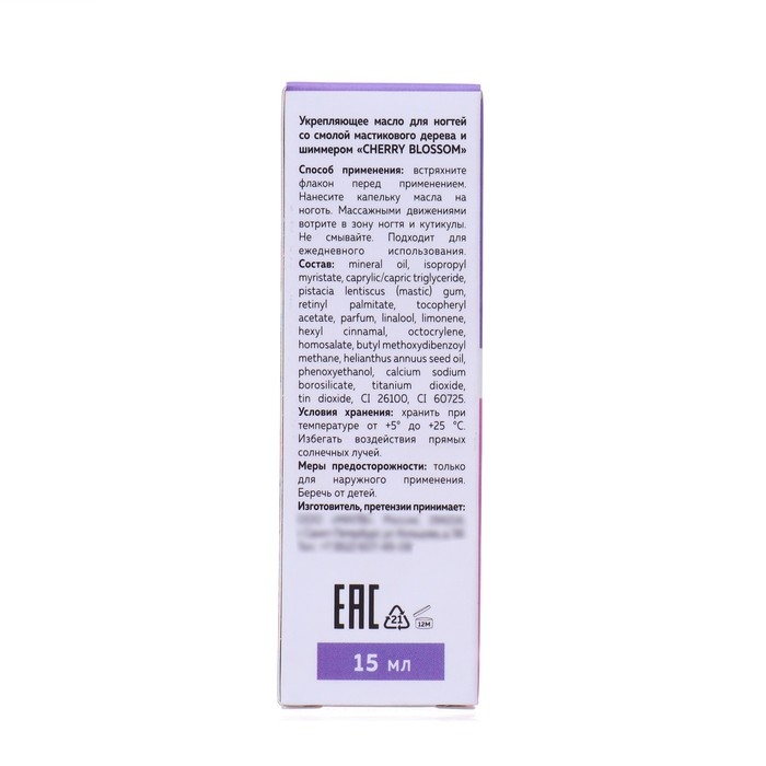 Укрепляющее масло для ногтей со смолой мастикового дерева и шиммером Cherry Blossom, 15 мл