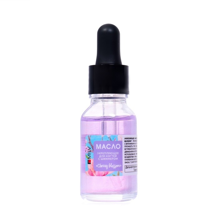 При нанесении и массаже благоухающая текстура продукта доставляет исключительно приятные ощущения, оставляя кожу бархатистой и нежной, без липких следов, жирного блеска и ощущения пленки, придавая коже деликатное мерцающее сияние (за счет мелких шиммерных частиц SHIMMER). Состав масла обогащен витаминами А и Е, проверенной укрепляющей формулой SHINY CARE в новом исполнении, благодаря чему при ежедневном использовании масла в течение 1 месяца кутикула становится тонкой и мягкой, надолго приобретает ухоженный, здоровый, опрятный вид. Романтичный аромат "Cherry blossom" раскроется нотами цветущих вишневых деревьев, розовых лепестков и чуть уловимой мускусной нотой, доставит дополнительное удовольствие в процессе ухода за руками. Флакон масла укомплектован пипеткой, позволяющей точно и экономично наносить и расходовать продукт.