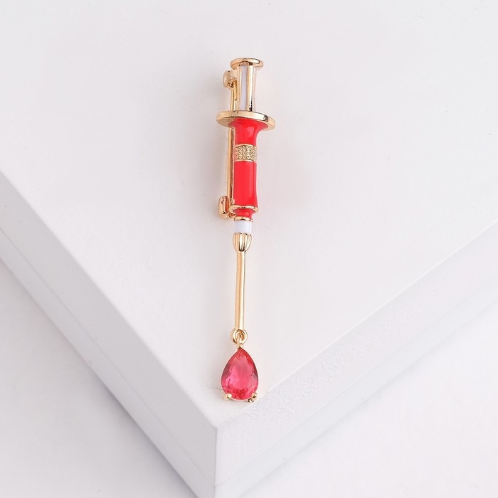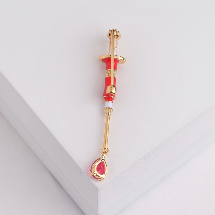 Брошь «Шприц» медицинский, цвет красный в золоте