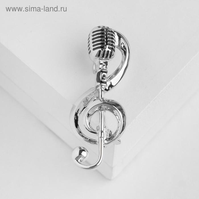 Брошь «Ретро микрофон» с нотой, цвет серебро