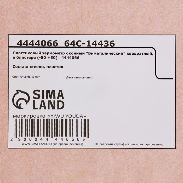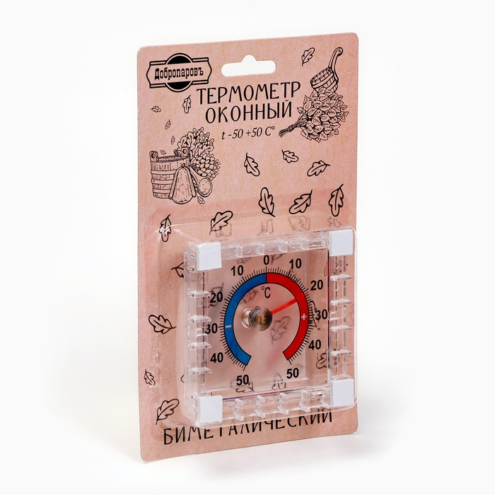 Пластиковый термометр оконный "Биметалический" квадратный, в блистере (-50 +50)