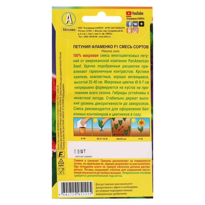 Семена Петуния Фламенко F1 многоцветковая махровая, смесь окрасок, 5 шт