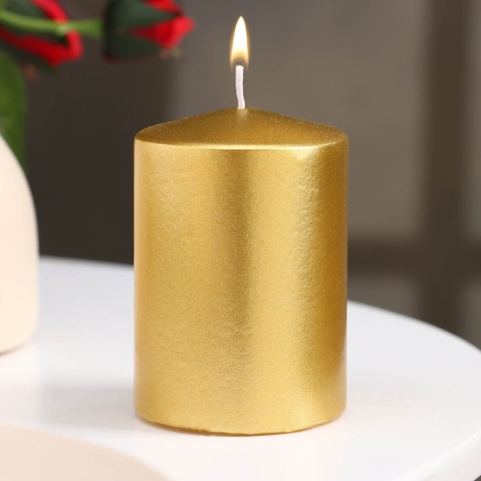 Свеча - цилиндр парафиновая, лакированная, золотой металлик, 5,6×8 см