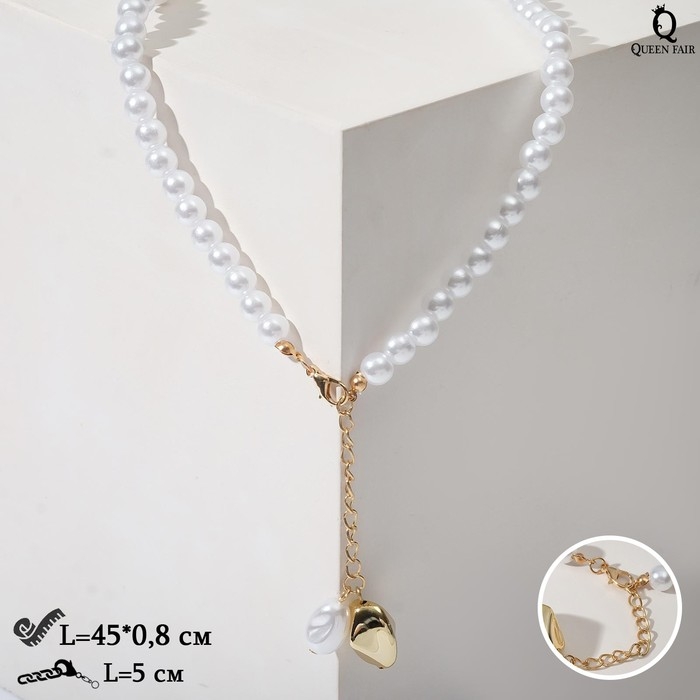 Колье с жемчугом «Сердце», цвет белый в золоте, 37 см