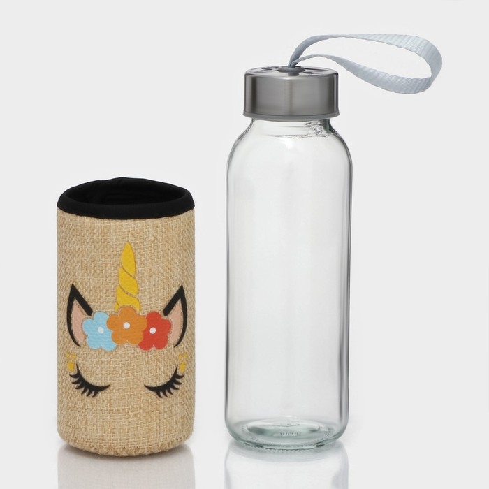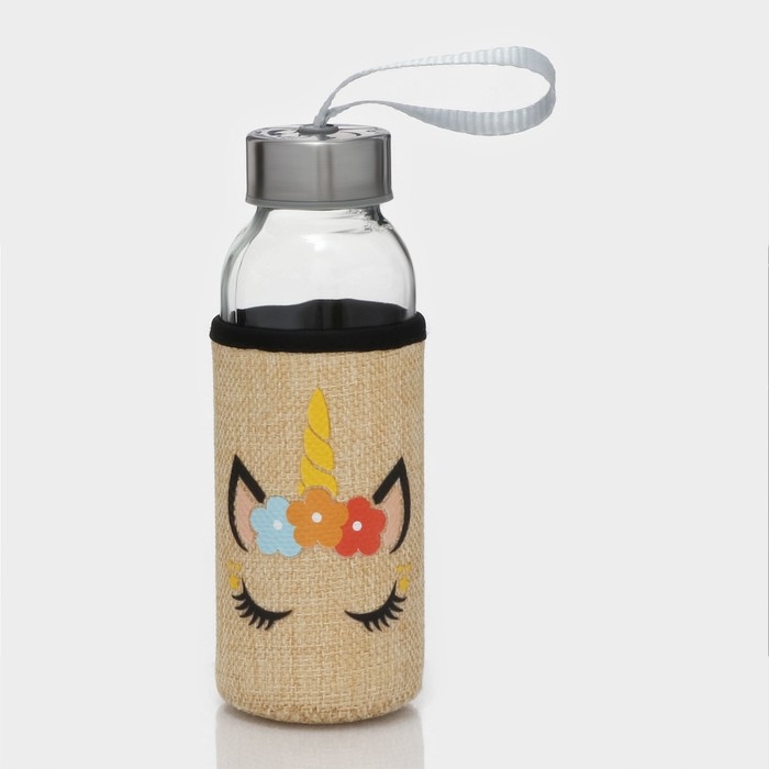 Бутылка для воды стеклянная в чехле «Единорожек», 300 мл, h=16,5 см