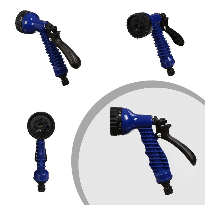 - В комплект входит пистолет-распылитель с семью режимами. Вы можете выбрать идеальный вид полива в зависимости от ситуации.
