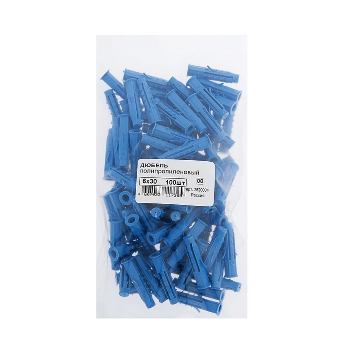 Дюбель "СТРОЙБАТ", тип "Еж", распорный, полипропиленовый, 6х30 мм, 100 шт