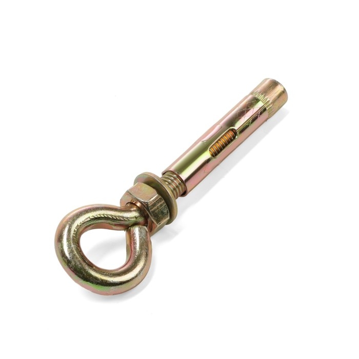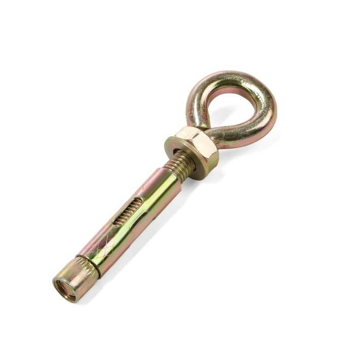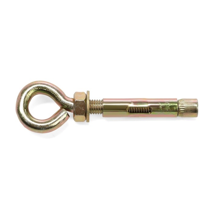 Анкер состоит из шпильки с метрической резьбой с кольцом, конусообразного клинового элемента, цилиндрической распорной втулки, шестигранной гайки, шайбы.