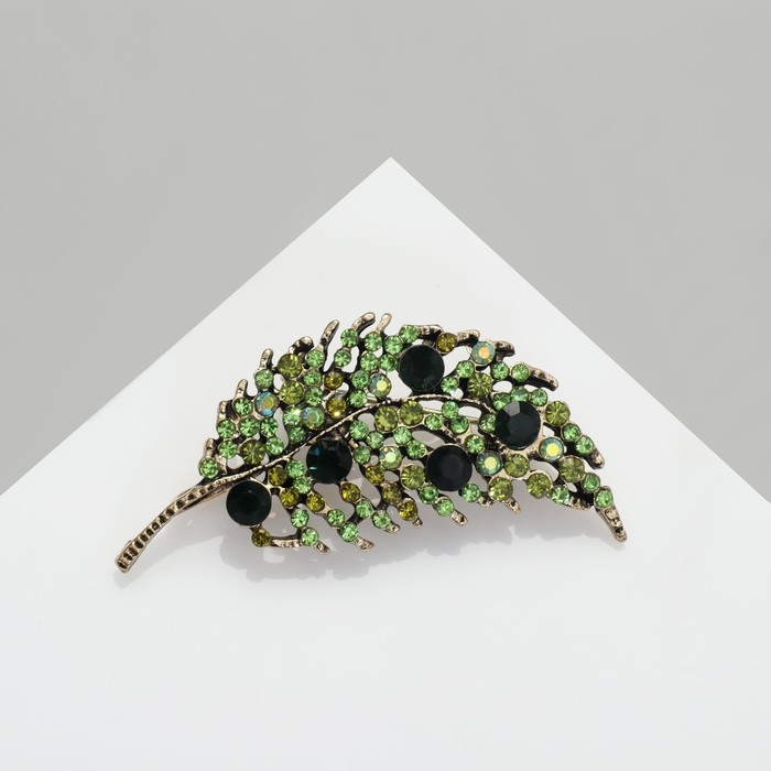 Брошь «Листочек», цвет зелёный в золоте