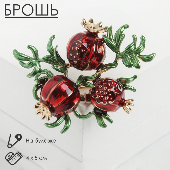 Брошь «Гранат», цвет красно-зелёный в золоте