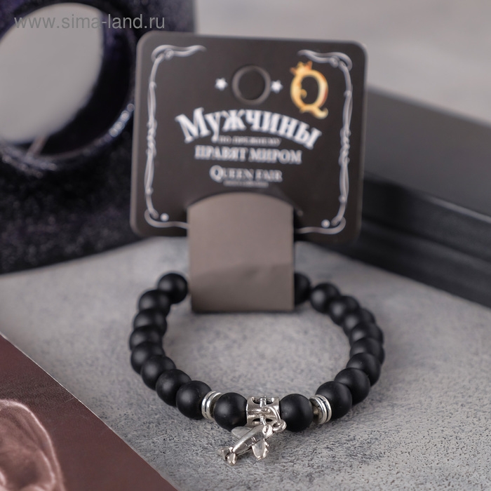 Браслет унисекс «Бастион» самолёт, цвет чёрный с серебром, шар №8, d=7 см