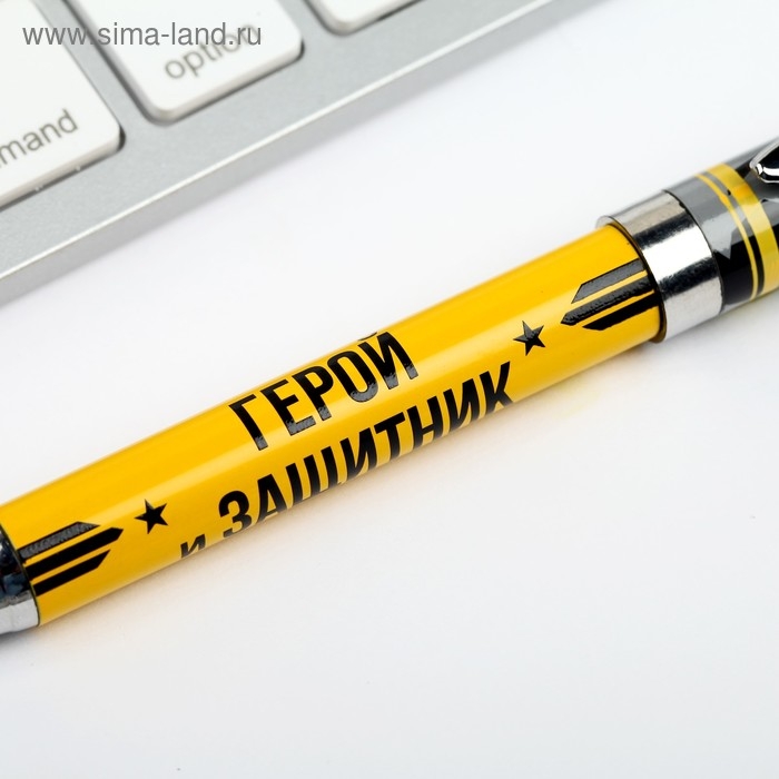 Ручка шариковая синяя паста, пластиковая со звездой "С 23 Февраля"