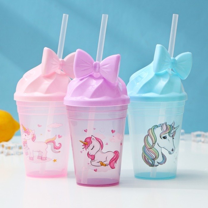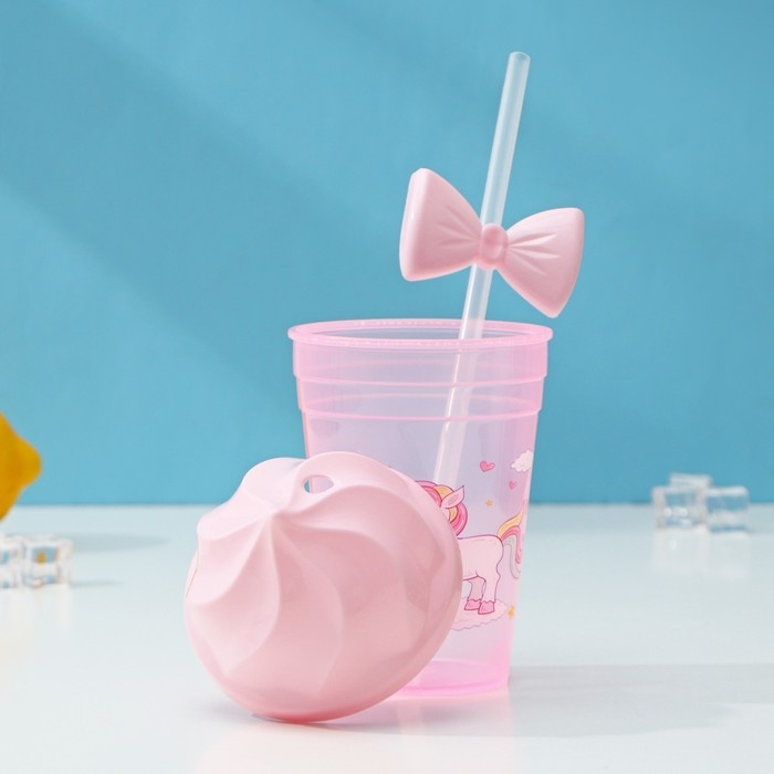Стакан с трубочкой и крышкой Доляна «Единорог», 450 мл, цвет МИКС