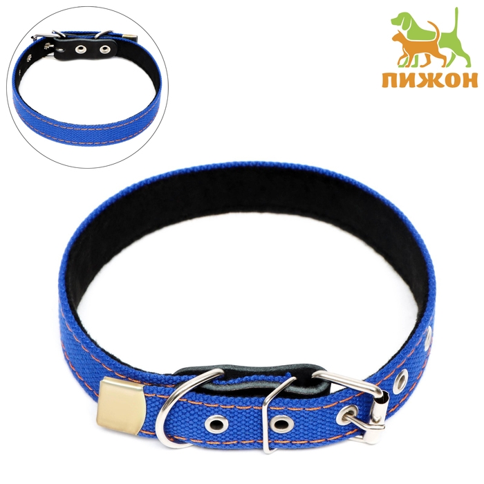 Ошейник брезентовый с подкладом, 57 х 2,5 см, ОШ 35-45 см, синий
