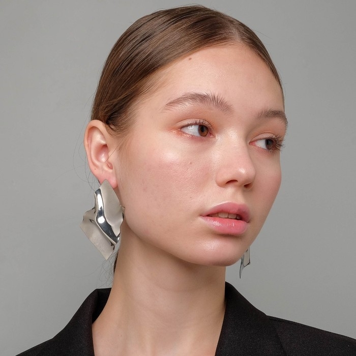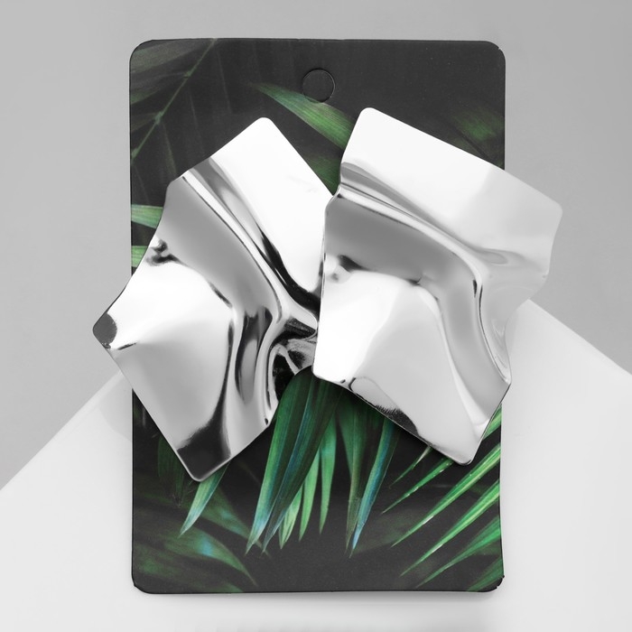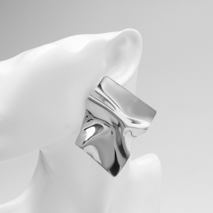 Серьги металл «Атмосфера» ромб мятый, цвет серебро