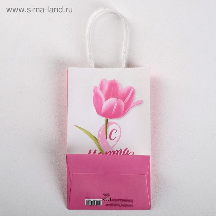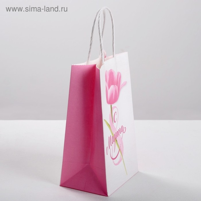 Пакет подарочный крафт, упаковка, «С 8 Марта», 12 х 21 х 9 см