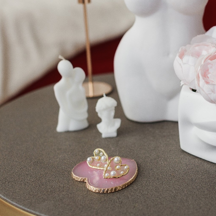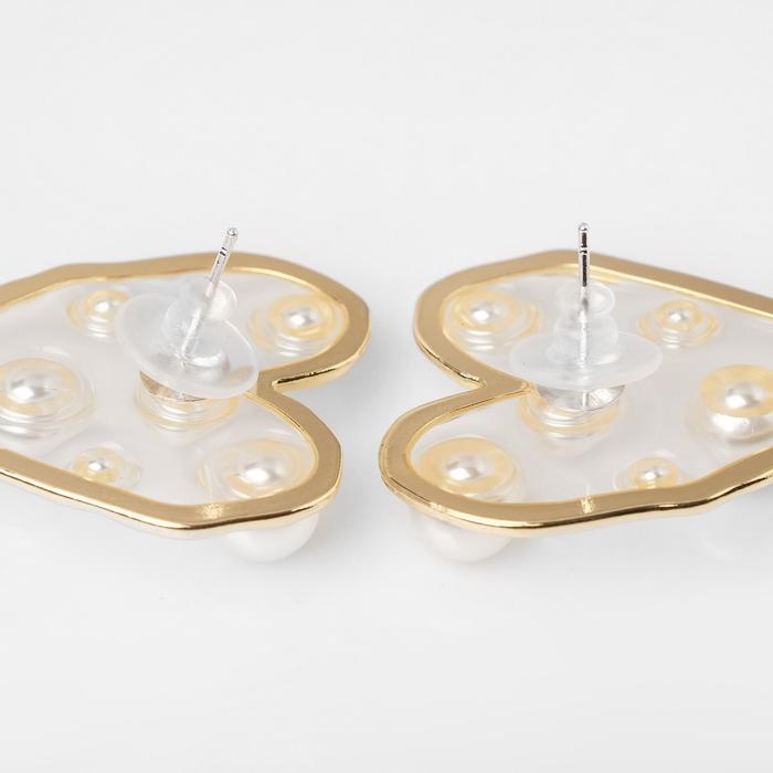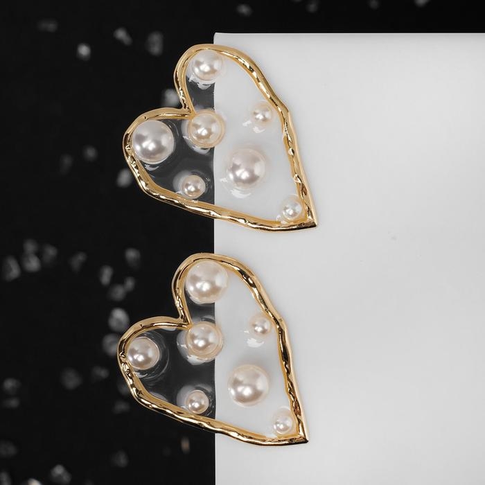 Серьги с жемчугом «Грейс» сердечки, цвет белый в золоте