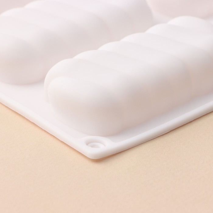 Форма для муссовых десертов и выпечки Доляна «Кофейные зёрна», силикон, 28,5×17×2,5 см, 6 ячеек (8×6 см), цвет белый