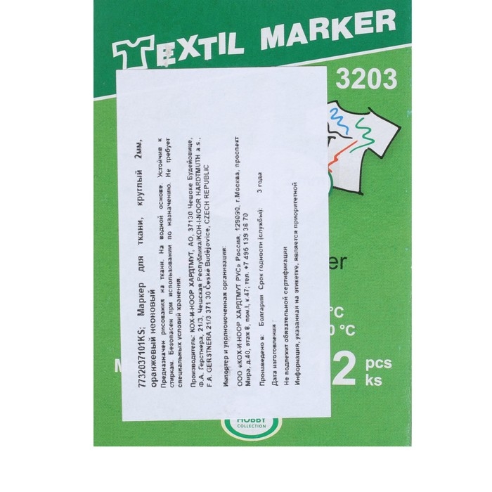 Предназначен для письма и росписи по тканевым материалам. Следы устойчивы к многократной обычной стирке в стиральных машинах и обладают светостойкостью. Также подходит для различных типов бумаги. Оснащен круглыми наконечниками диаметром 3 мм с шириной дорожки 2 мм и длиной дорожки 500 м.