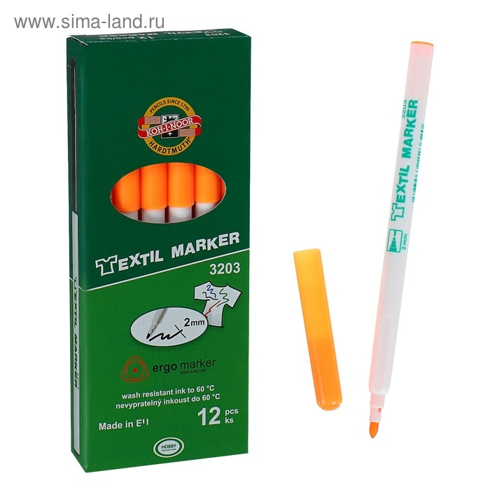 Маркер для ткани 2.0 мм Koh-I-Noor 3203/71, длина письма 500 м, неоновый оранжевый