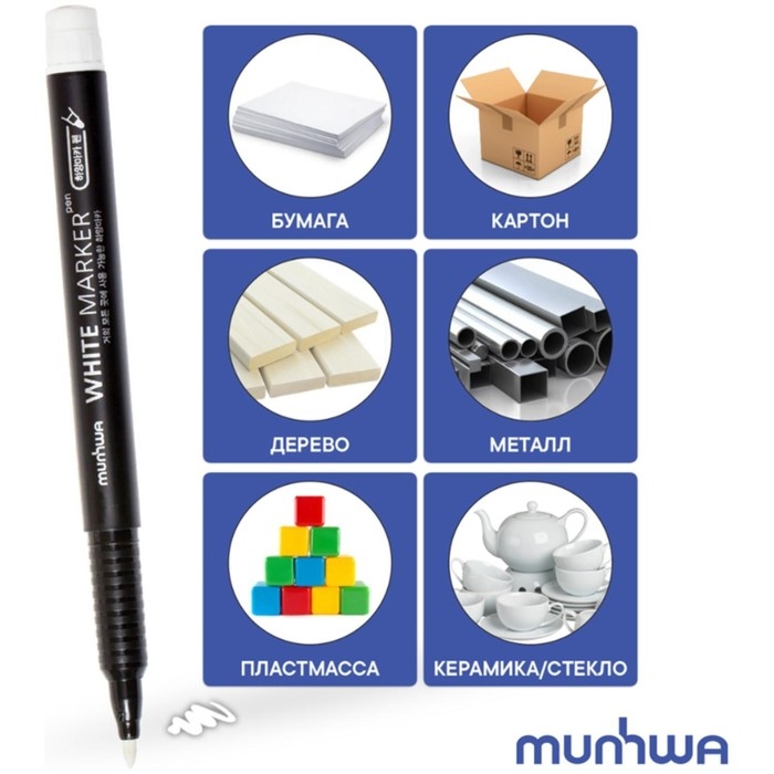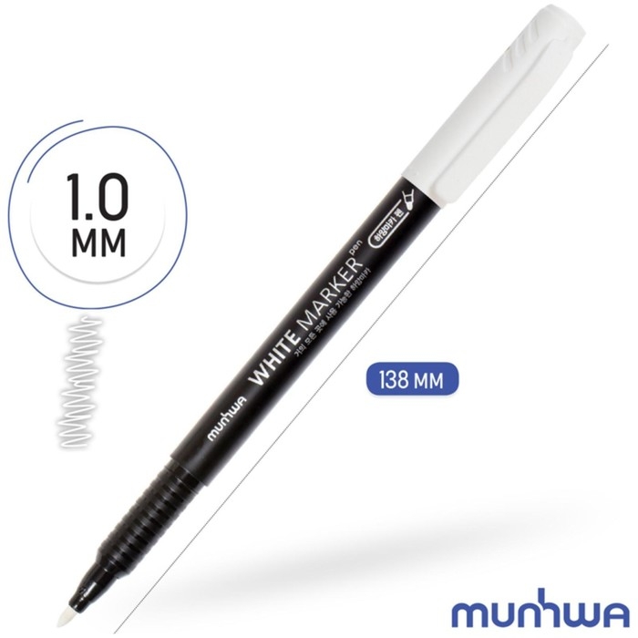 Маркер перманентный MunHwa, 1.0 мм, пулевидный, белый