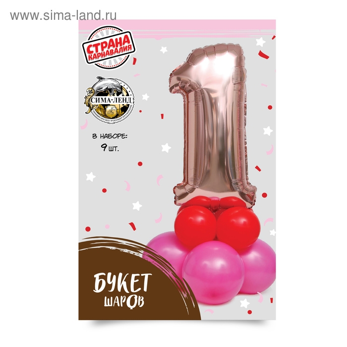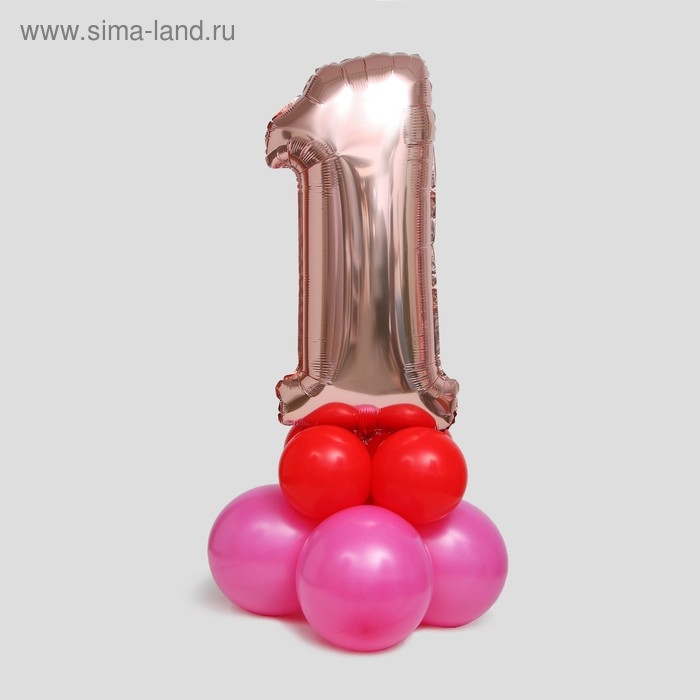 Букет из шаров «Цифра 1», фольга, латекс, набор 9 шт., цвет розовое золото