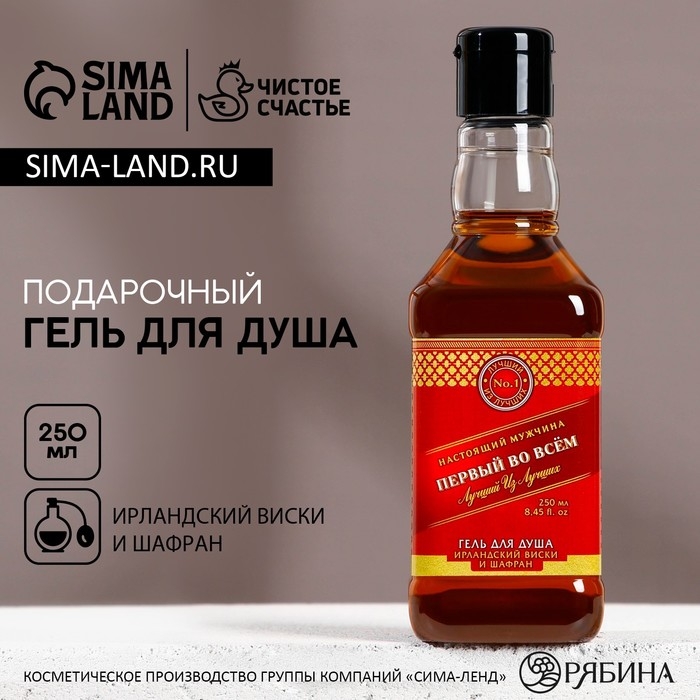Гель для душа во флаконе виски «Первый во всем», 250 мл, аромат ирландского виски и шафрана, Новый Год