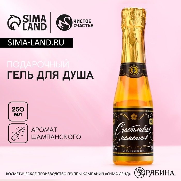 Гель для душа во флаконе шампанское «Счастливых моментов!», 250 мл, аромат шампанского, Новый Год