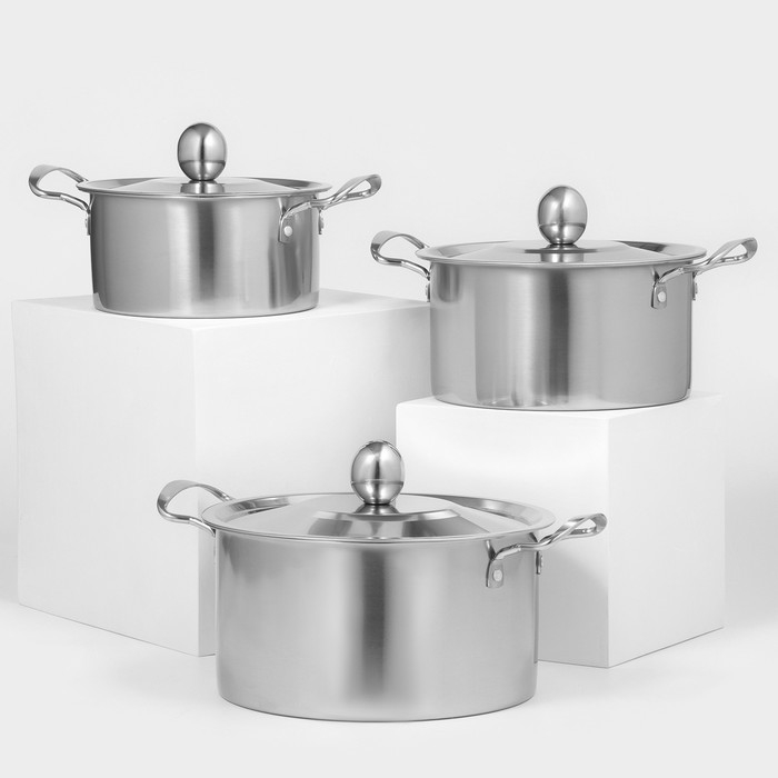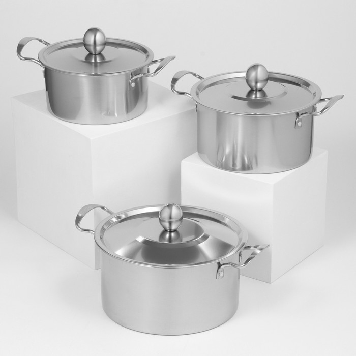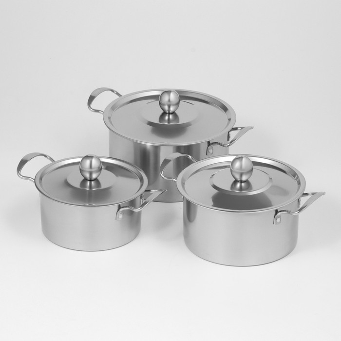 Набор кастрюль из нержавеющей стали «Классик», 3 предмета: 1 л (d=16 см), 1,5 л (d=18 см), 2 л (d=20 см)