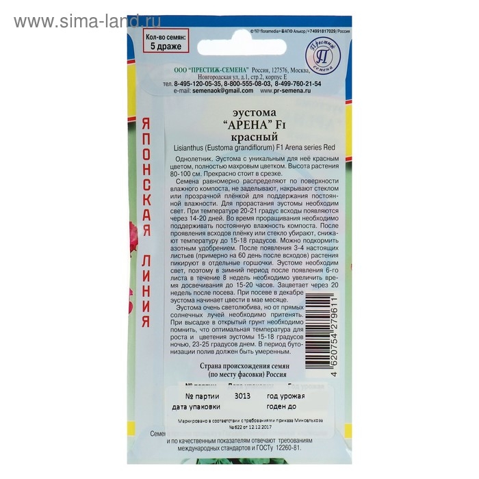 Семена цветов Эустома "Арена" красный F1, 5 др