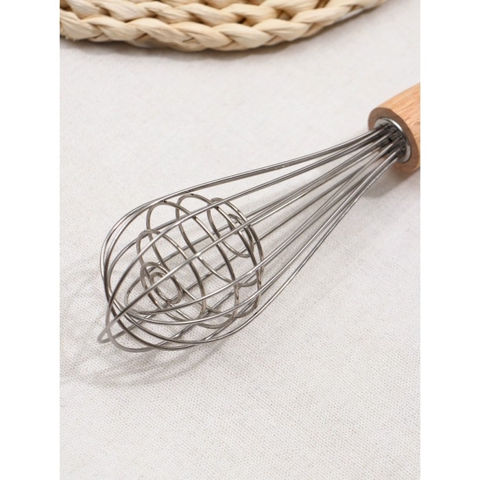 Венчик для взбивания с деревянной ручкой «Пружина», 28 х 7,5 х 2 см