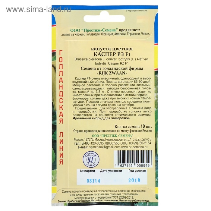 Семена Капуста цветная "Каспер Р3", F1,10 шт.