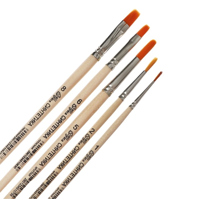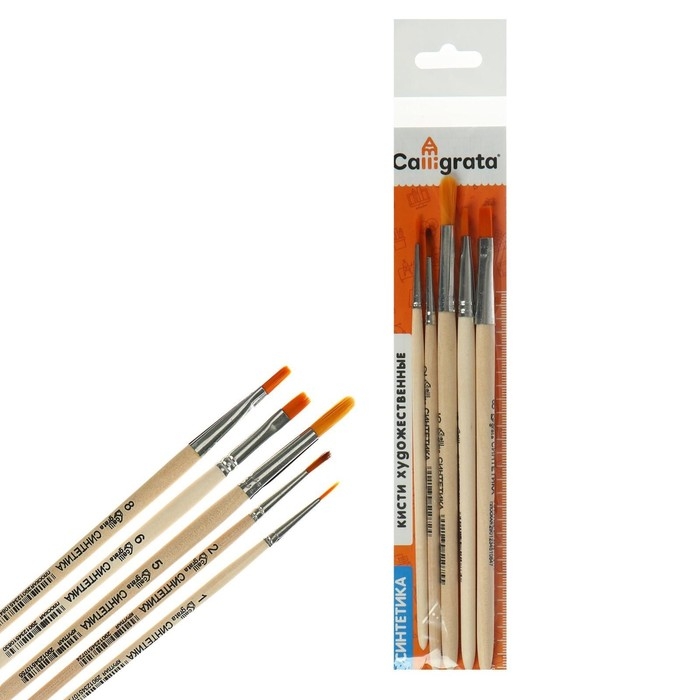Набор кистей Синтетика 5 штук, Calligrata №2 (круглые №: 1, 2, 5; плоские: №5, 8), деревянная ручка