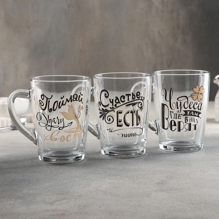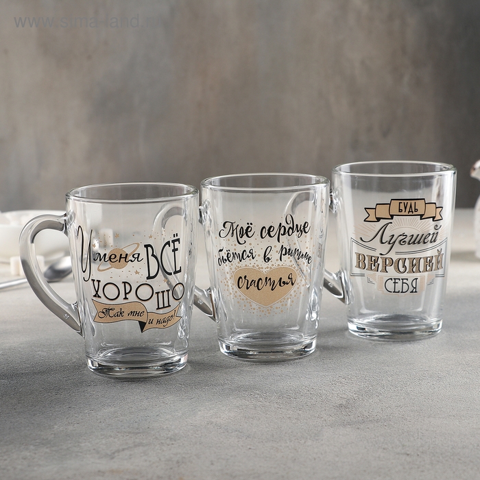 Кружка стеклянная «Пожелания», 300 мл, рисунок МИКС