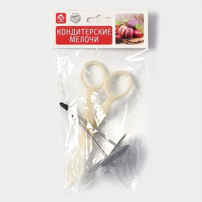 Набор кондитерский Доляна, 3 предмета, гвоздь кондитерский d=3/5 см, ножницы кондитерские для переноски украшений, цвет МИКС