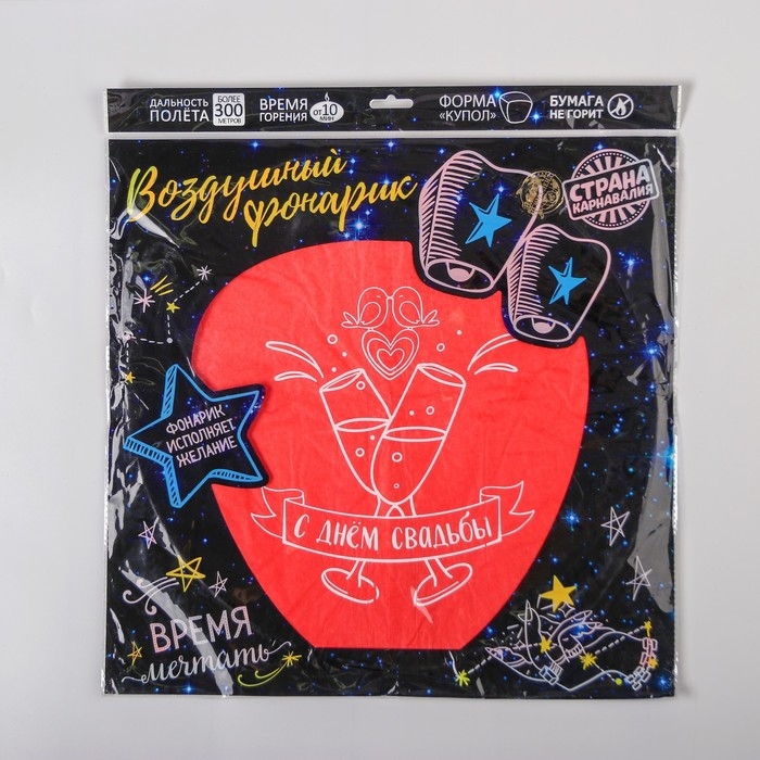 Небесный фонарик «С днём свадьбы», форма купол, цвет красный