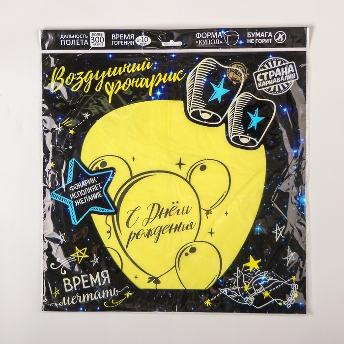 Небесный фонарик «С днём рождения», форма купол, цвет жёлтый