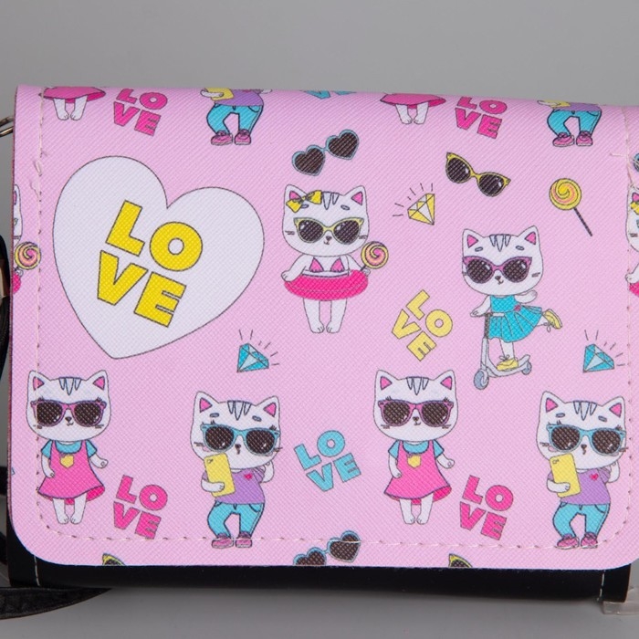 Сумка детская для девочки "Кошечка", на клапане, цвет чёрный/розовый, 15х4х12 см