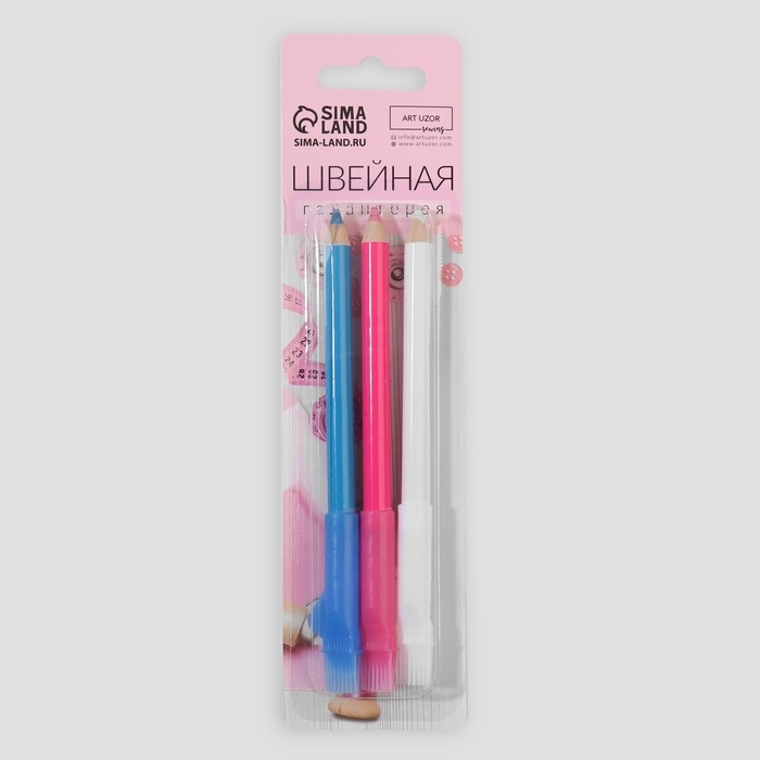 Карандаш для ткани, самозатачивающийся, 3 шт, цвет белый, красный, синий