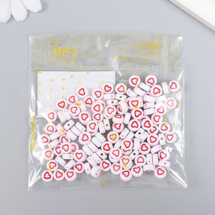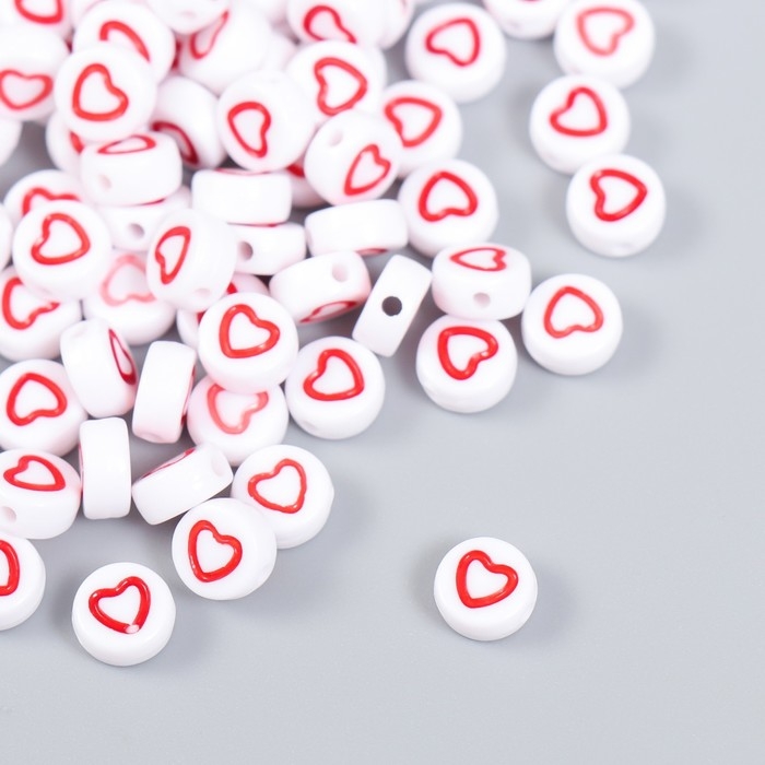 Бусины для творчества пластик "Красное сердце с белой серединкой" набор 20 гр 0,7х0,7х0,4 см 464563