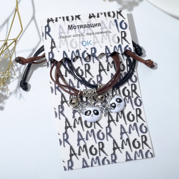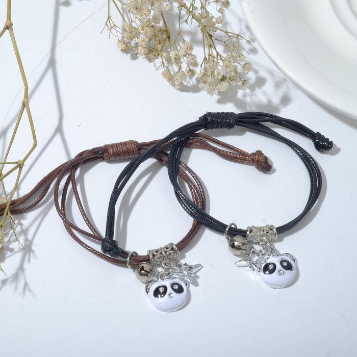 Браслеты «Неразлучники» панды, цвет чёрно-коричневый, L=12,5 см