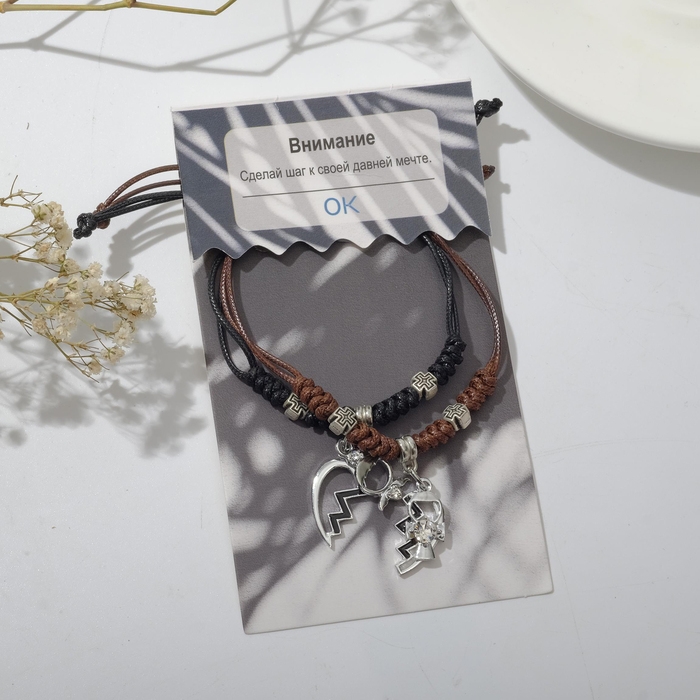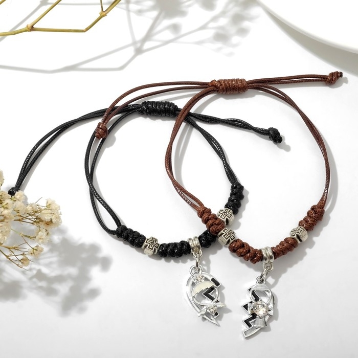 Браслеты «Неразлучники» две половинки, цвет чёрно-коричневый, L=12,5 см
