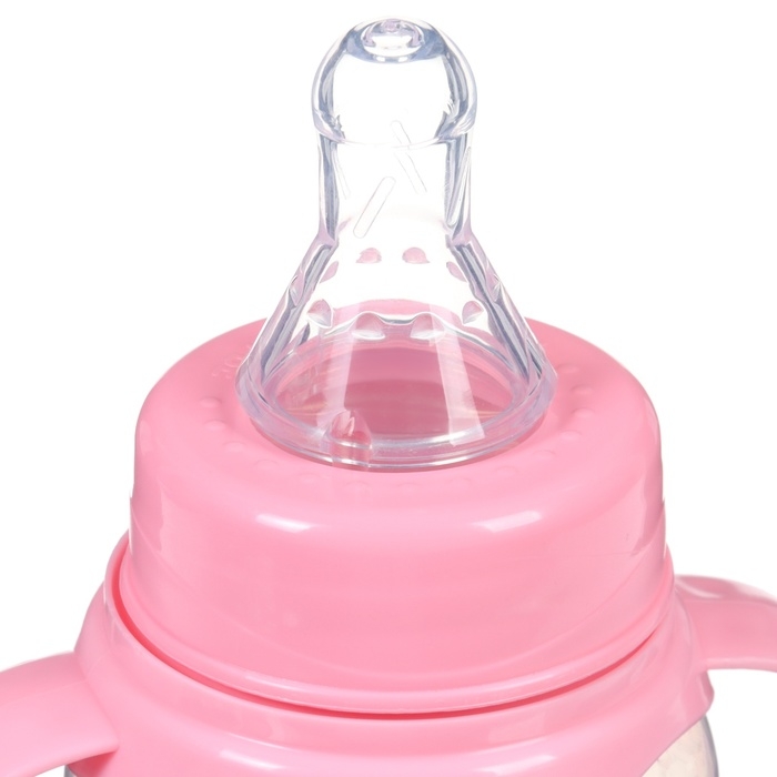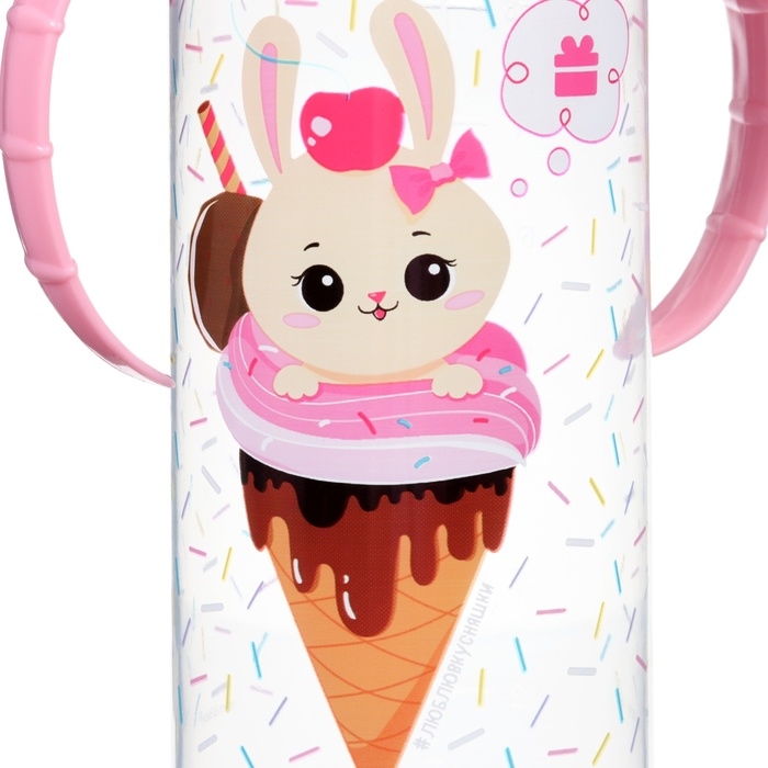 Бутылочка для кормления «Зайка, пончик», классическое горло, 250мл., от 3 мес., цилиндр, с ручками