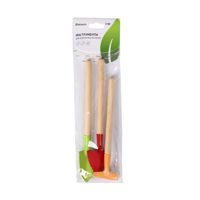 Набор садового инструмента, 3 предмета: рыхлитель, 2 совка, длина 20 см, деревянные МИКС ручки, Greengo